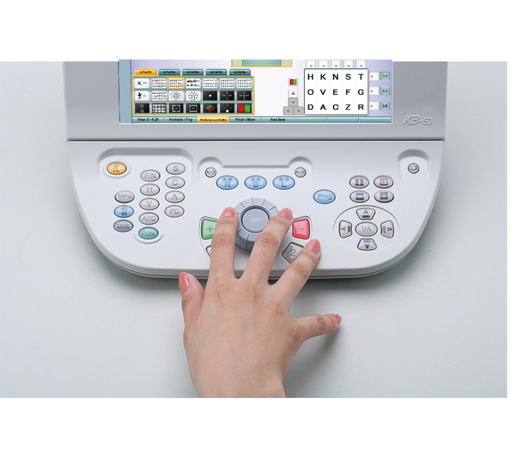 En se servant du panneau de contrôle du KB-50S, l’opérateur pourra contrôler toutes les fonctions de la tête automatique de la tête de réfracteur CV-5000PRO. Le KB-50S dispose d’un grand écran LCD tactile couleur, ce qui permet d’obtenir le meilleur affichage des résultats de la réfraction disponible à ce jour sur le marché. Il est possible de sélectionner des réglages personnels comme l’agencement de l’écran et le mode opératoire. La fonction de support des ventes vous aide à visualiser votre conseil en matière de lentille avec des animations.