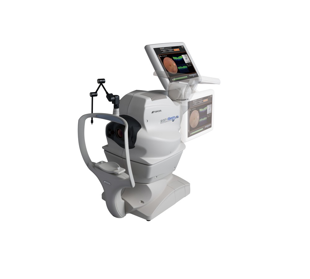 D'une simple pression avec votre doigt sur l'écran tactile, le 3D OCT-1 Maestro scanne automatiquement les deux yeux et produit simultanément un balayage OCT et une image objective du fond d’œil.