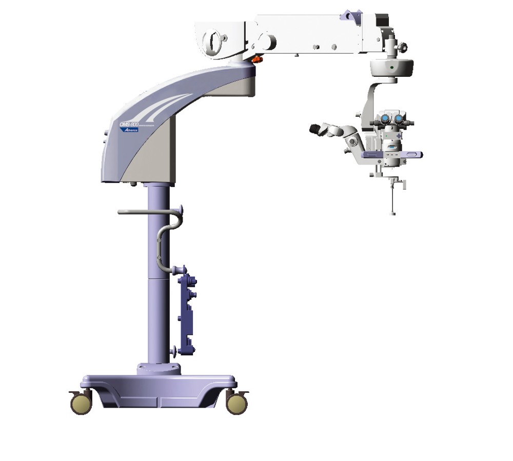 La norme OMS-800 a un tube binoculaire à angle variable et un traducteur XY incorporé. Un encombrement compact et stable associé à un long bras de microscope assure une installation flexible dans le bloc opératoire. Le footswitch multifonctionnel peut être personnalisé pour la préférence du docteur. Un filtre jaune et un éclairage à 3 directions (± 2° et 4° ) garantissent un système d'éclairage polyvalent.