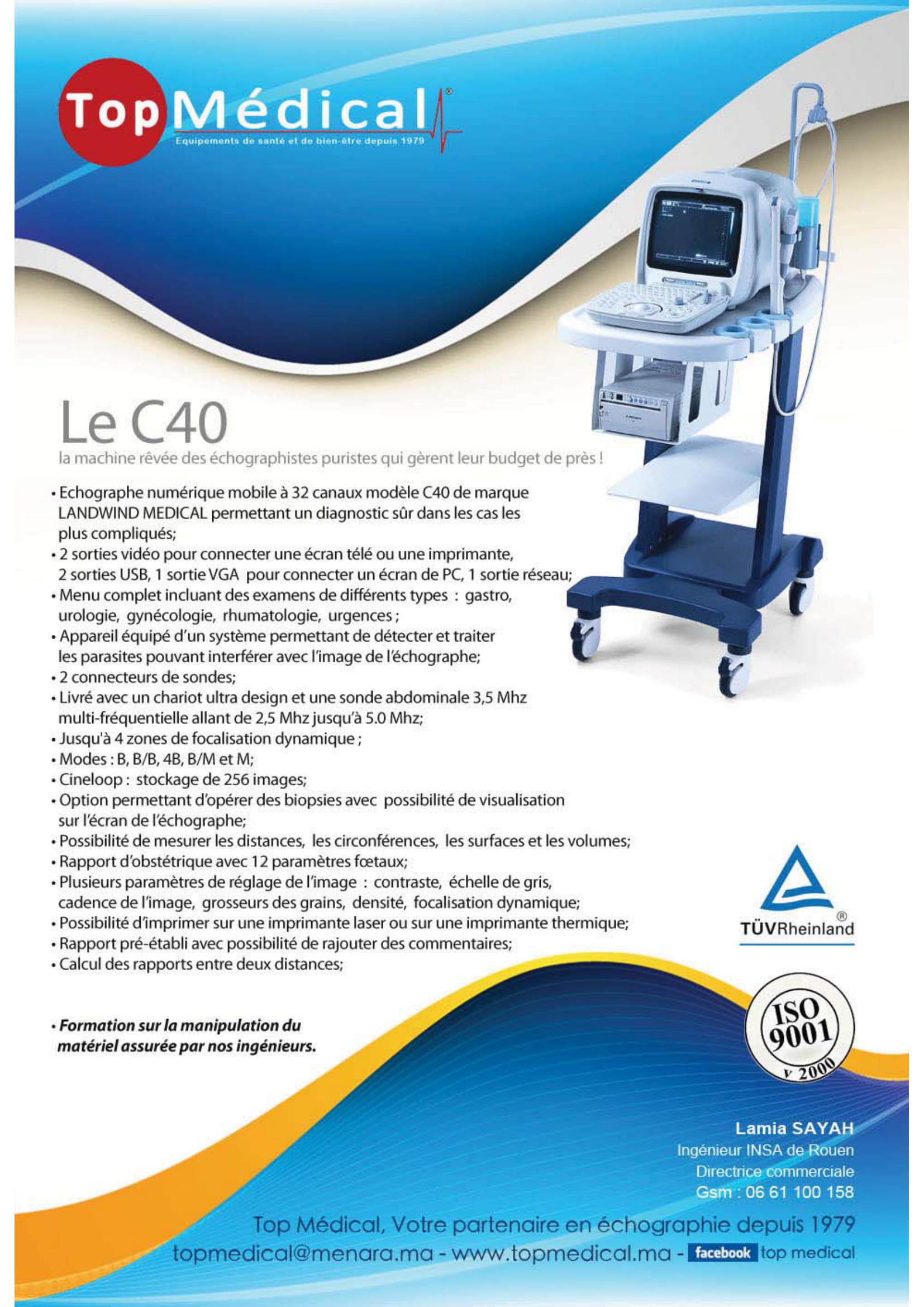 ECHOGRAPHE NUM MOBILE32 CANAUX C40/CHARIOT SDE ABDO MULTI-FRÉQ3,5 MHZ