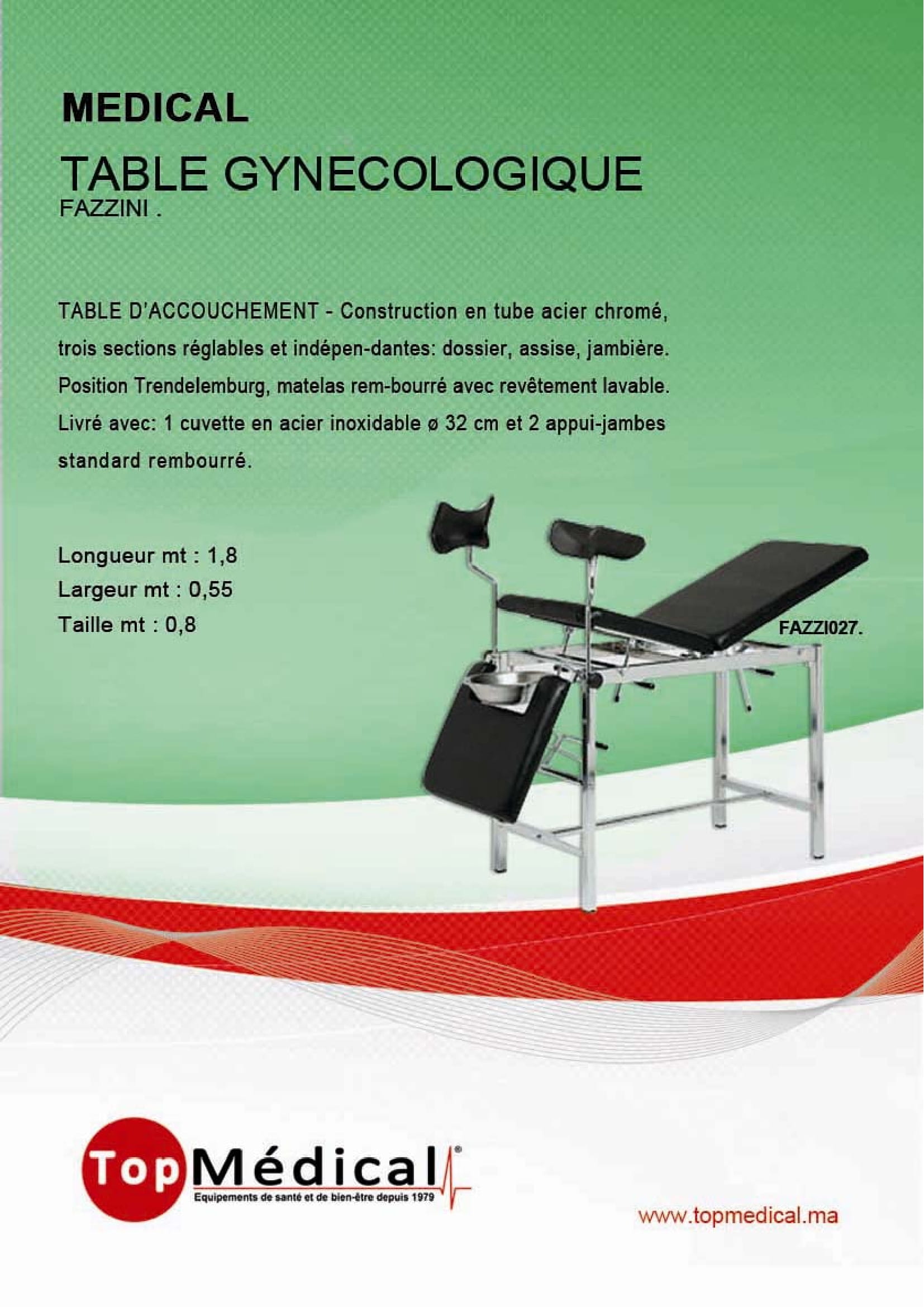 TABLE GYNÉCOLOGIQUE EN TUBE CARRE CHROMÉ