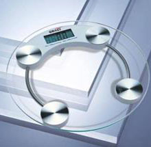 BALANCE ÉLECTRONIQUE CIRCULAIRE EN VERRE. PORTÉE DE 150KGS.