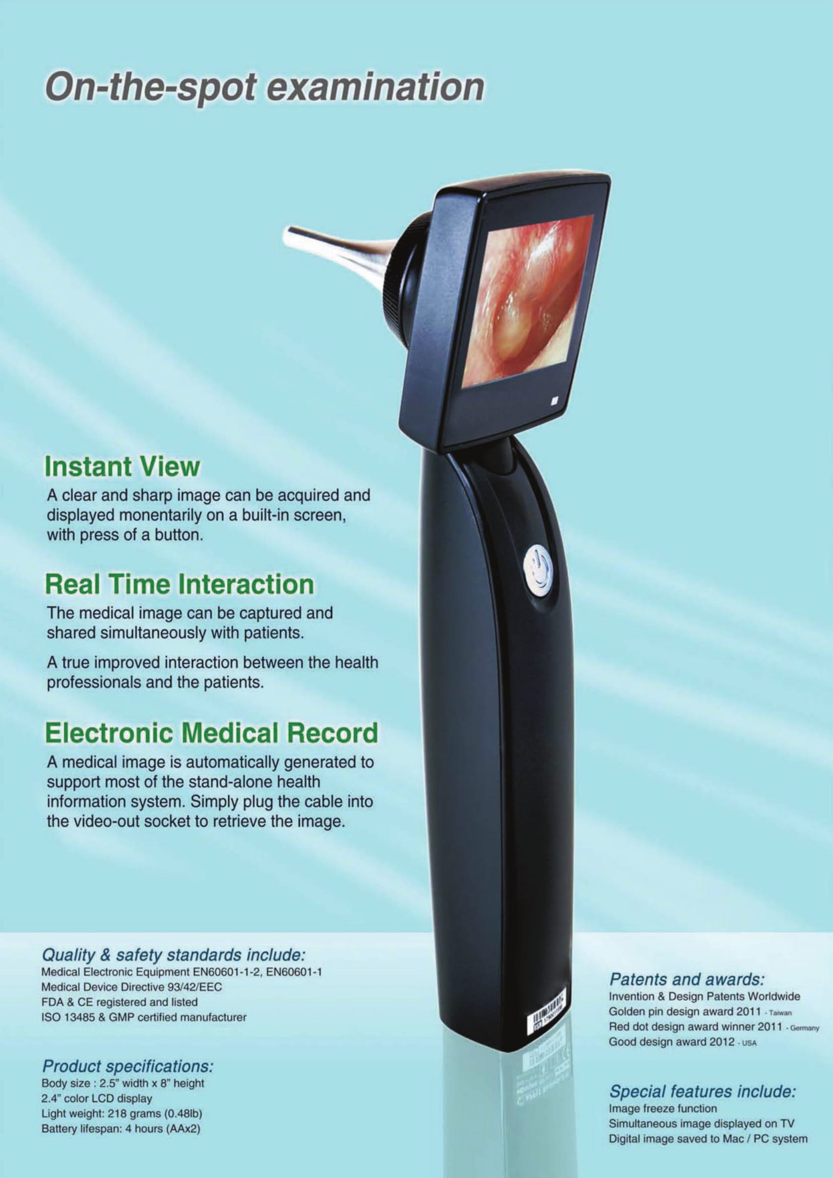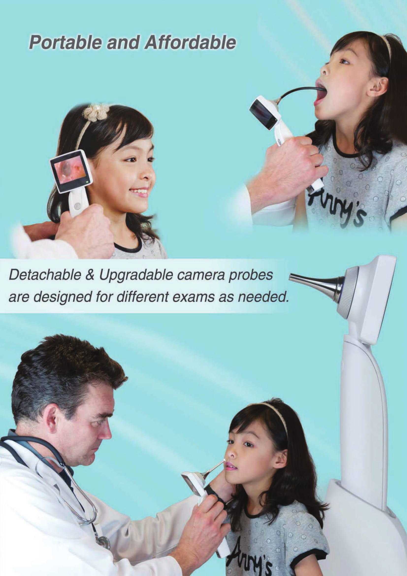 Trousse de diagnostic ORL (nez-oreille-larynx) caméra écran intégrés.
