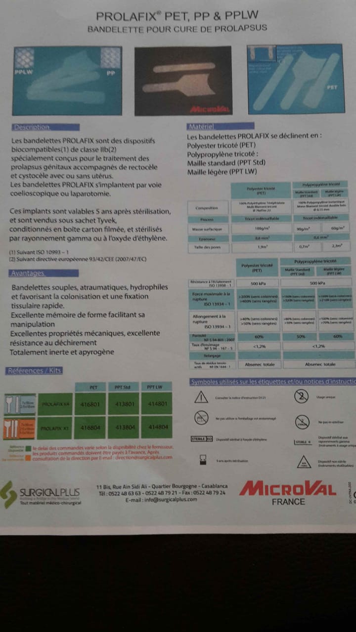 Ces implants sont indiqués chez les femmes présentant un prolapsus apical avancé des organes pelviens (POP-Q ≥ stade 2) dans le cadre d’une chirurgie par voie abdominale. Ils peuvent être utilisés chez les femmes avec ou sans utérus et des interventions chirurgicales concomitantes peuvent être pratiquées si nécessaire à la discrétion du chirurgien.