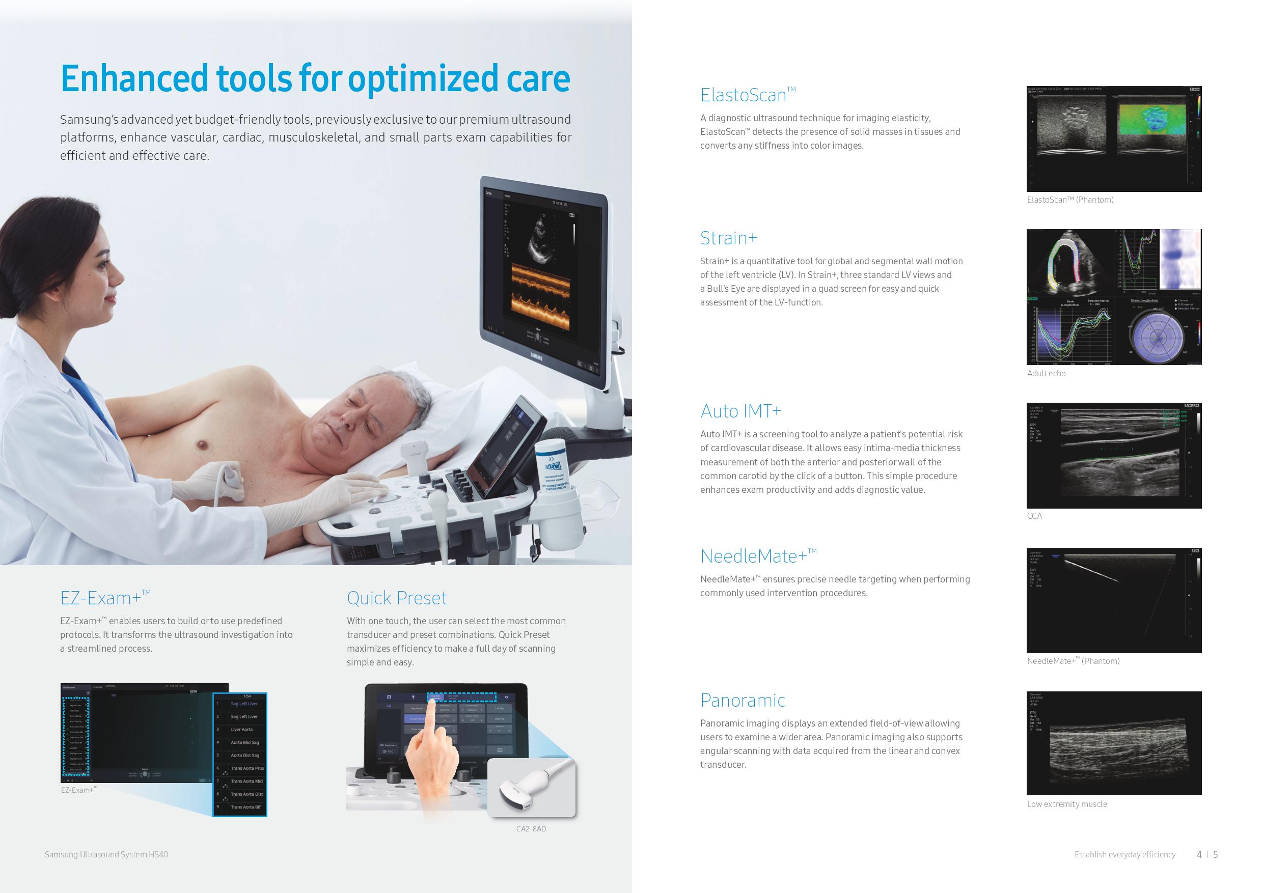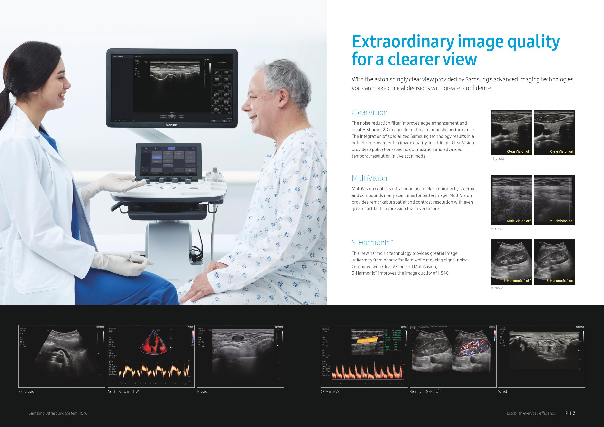 Le filtre de réduction de bruit optimisé des contours et crée des images 2D ainsi que des performances de diagnostic optimales. L'intégration de la technologie spécialisée de Samsung se traduit par une amélioration notable de la qualité de l'image. En outre, ClearVision fournit une optimisation spécifique à l'application et une résolution temporelle avancée en mode de numérisation en direct.