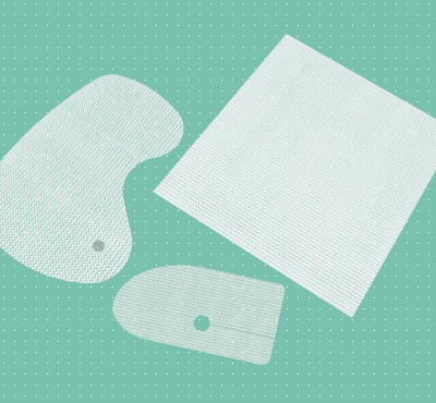 Ces implants existent sous de multiples formes (carrés, rectangles, disques…) et dimensions (6 x 11cm, 15 x 15cm, 15 x 30 cm…) et peuvent être fabriqués dans les matériaux suivants :