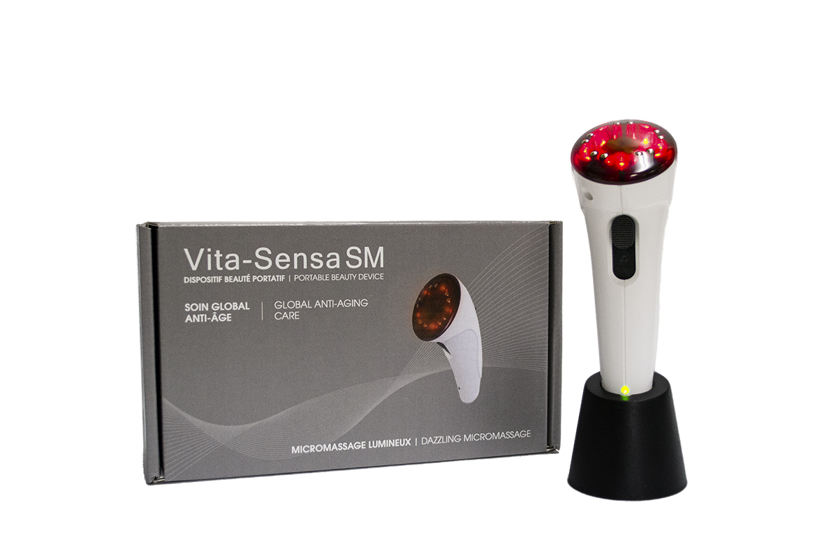 Le Vita-Sensa SM est le soin esthétique anti-âge par excellence pour les peaux matures. Il se distingue par sa combinaison unique de 3 technologies efficaces : le microcourant, la photothérapie rouge et le massage cutané vibrant. Alors que le microcourant pulsé permet de réduire considérablement l’apparence des rides et d’améliorer le tonus de la peau, la photostimulation par la lumière rouge aide à la revitalisation cutanée. Le massage vibrant, pour sa part, contribue au bien-être physique et favorise une meilleure pénétration des produits dans la peau.