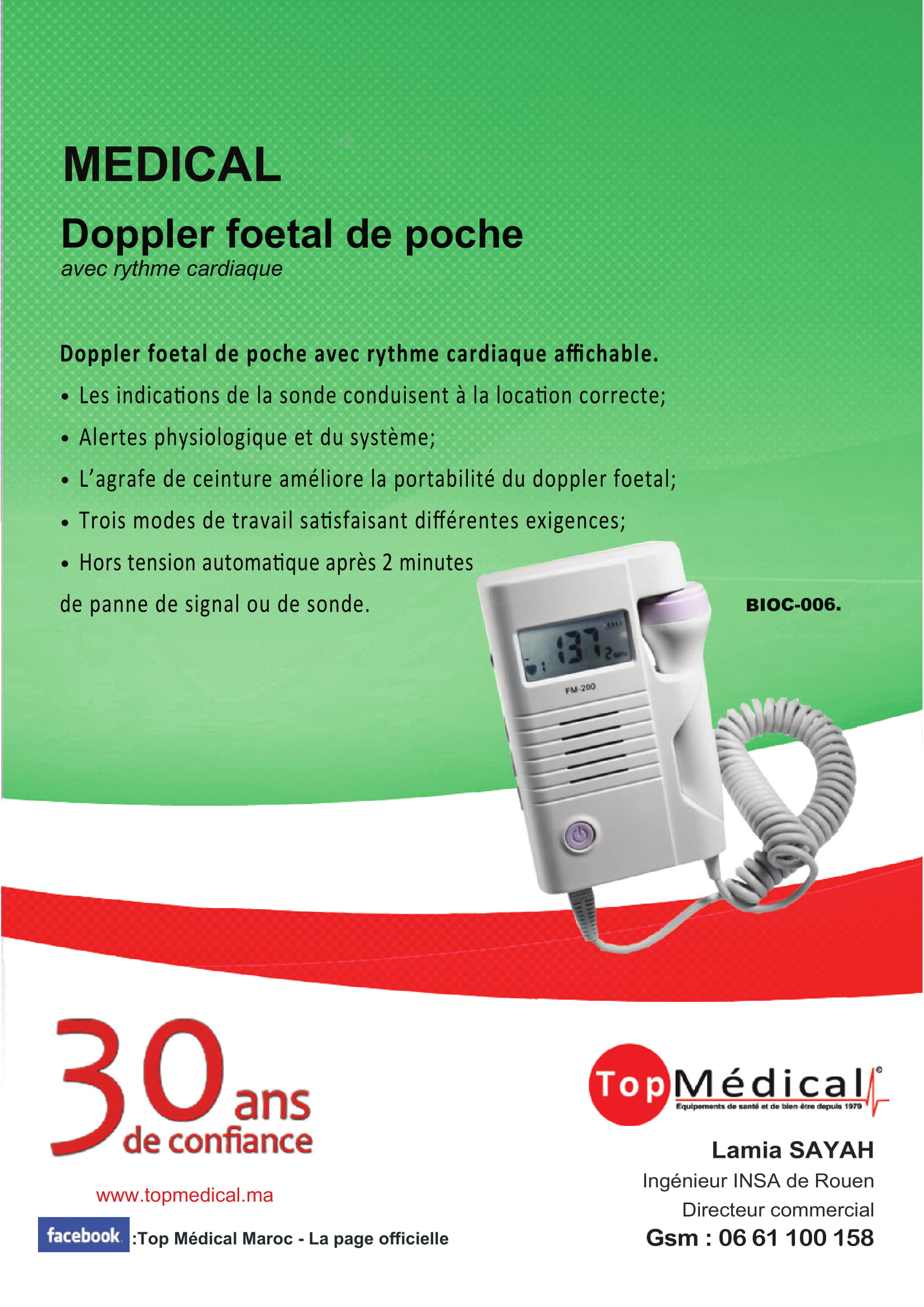 Doppler foetal de poche avec rhythme cardiaque