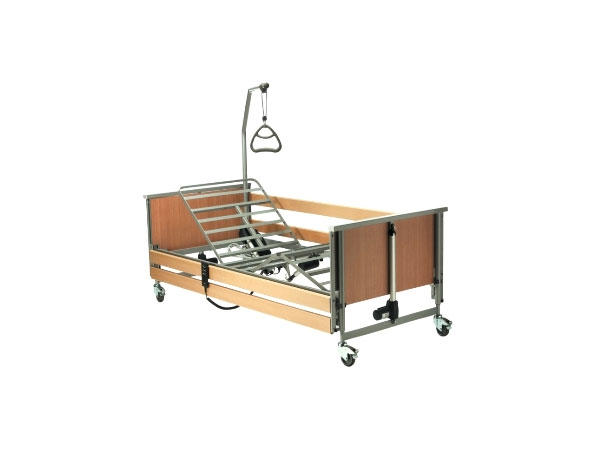 Réglage électrique de la hauteur, Du dossier et de la plicature des genoux, Repose –jambes Finition en bois Barrières en bois Potence d’angle légère et simple d’utilisation Idéal comme lit médical à domicile