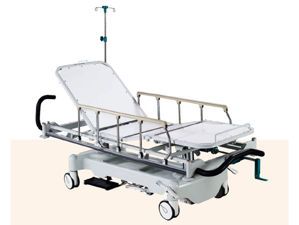 Dimension:1900*610*540/900mm Poids:95KG 1manivelle 2 barrières pliables en aluminium Relève -Buste réglable par verin à gaz Surface de couchage en ABS Emplacement à oxygène Potence à sérum