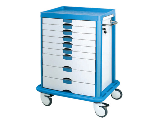 À 9 tiroirs avec séparateurs amovibles :Verrouiller casiers 2 plateaux escamotables sur le côtéMontés sur 4 rouesFabriqué en ABS.