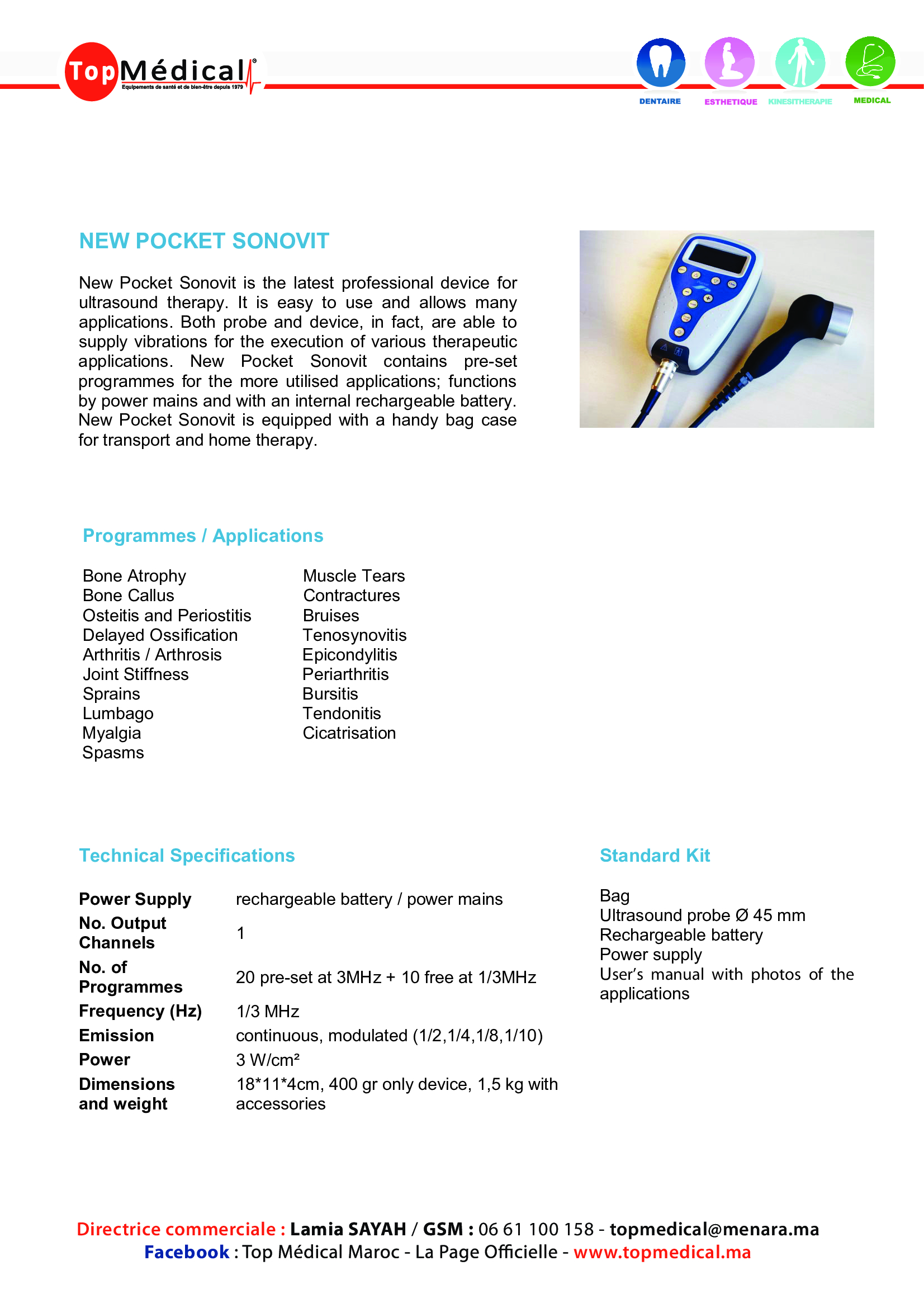 Soleo SonoStim + accessoires+ téte ultrason grande blanche 5cm