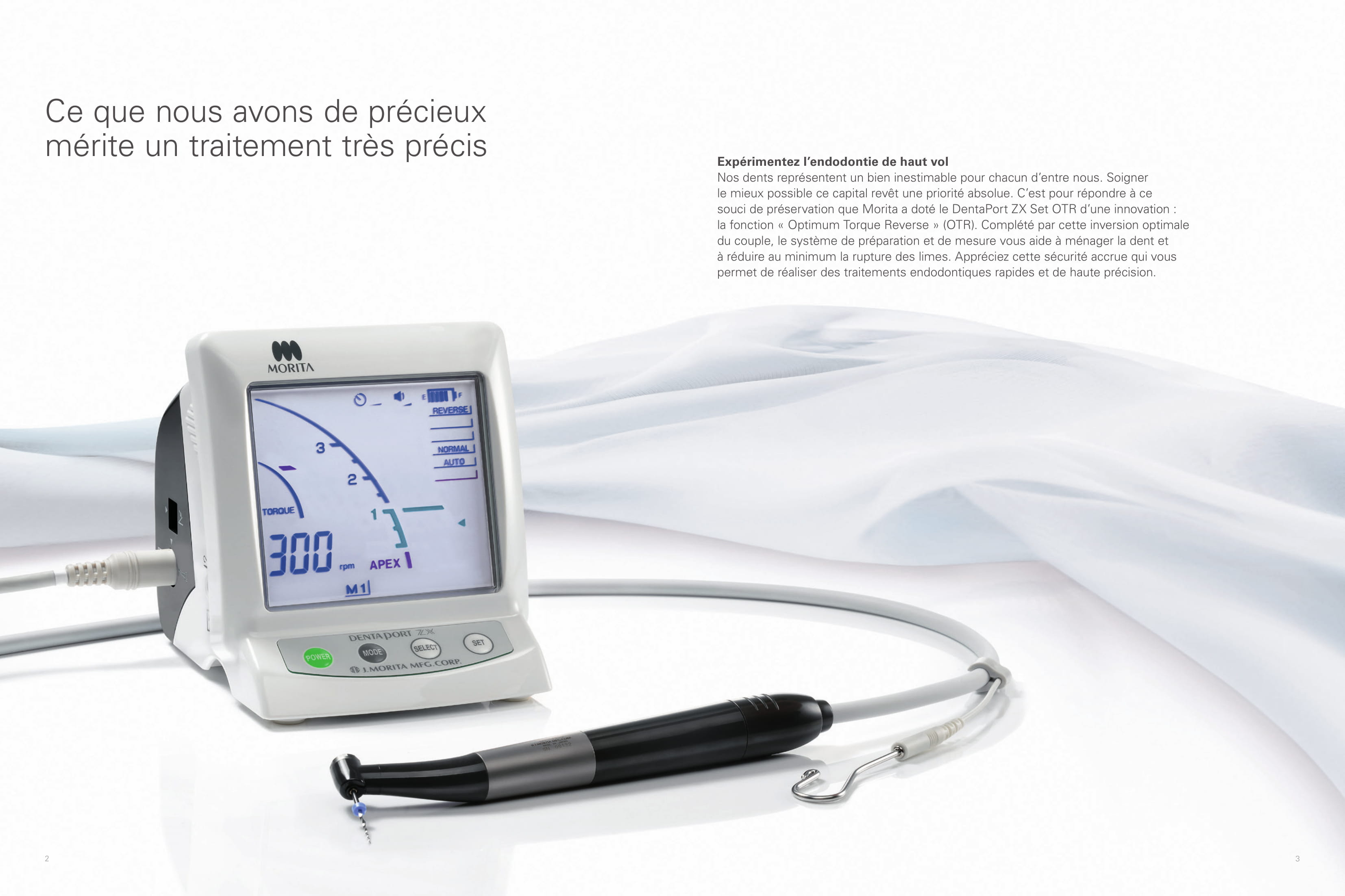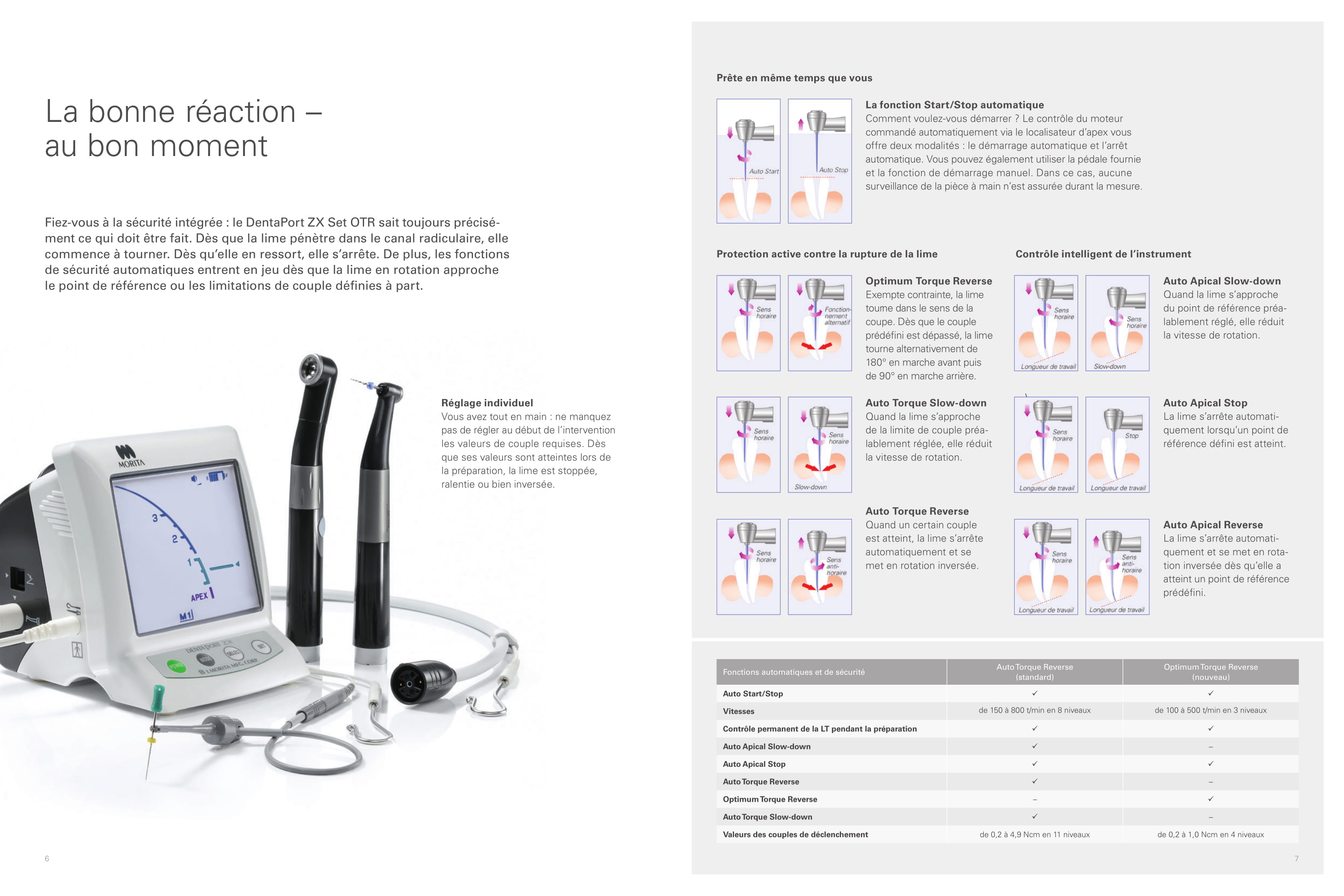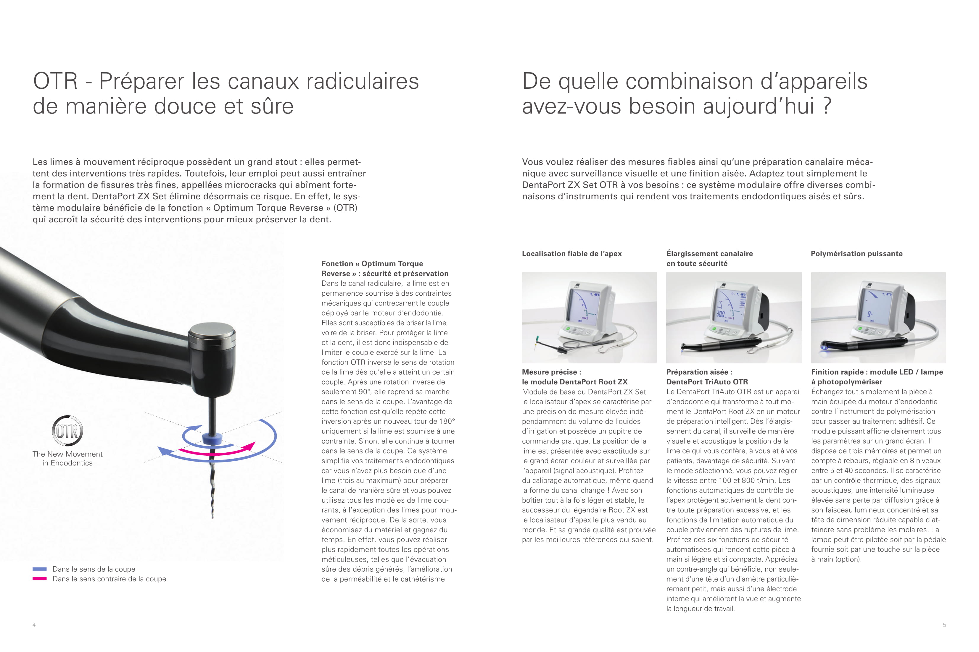 Vous n'avez jamais travaillé une dent de manière aussi délicate : le DentaPort ZX avec fonction Optimum-Torque-Reverse (OTR) assure un couple optimal des limes – en rotation tout comme en alternance. Les microfissures et les bris de lime appartiennent désormais au passé. L'endodontie de la classe supérieure – rine que pour vous.