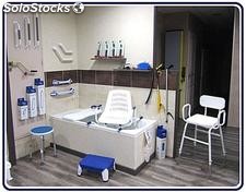 Divers équipements tels qu'un siège pliable, un pare-douche à battants