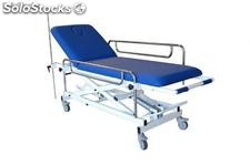 Chariot hydraulique de 2 panneaux, avec barrières de sécurité, porte sérum, porte bouteilles d oxygene et roues de transport.