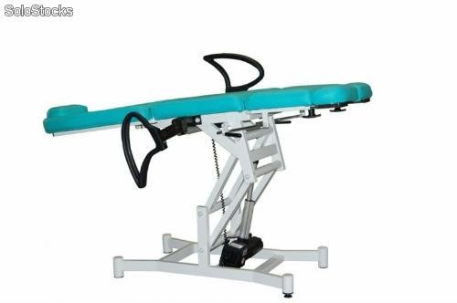 Fauteuil électrique de podologie avec hauteur réglable télécommande et jambières indépendantes.
